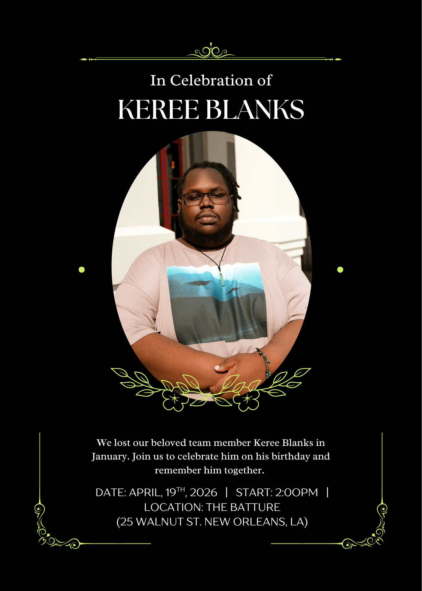 Join us to Celebrate Keree's Birthday! This event is casual and there's no need to bring anything other than yourself. We wanted to do a more formal event with his family, but for now, we'd still like to celebrate with you all.