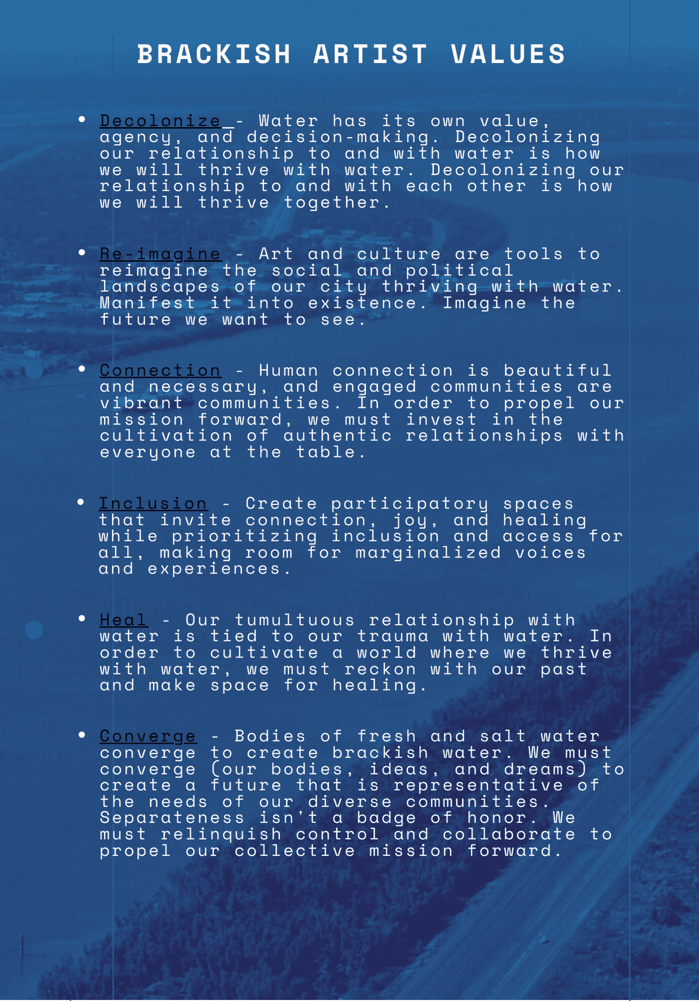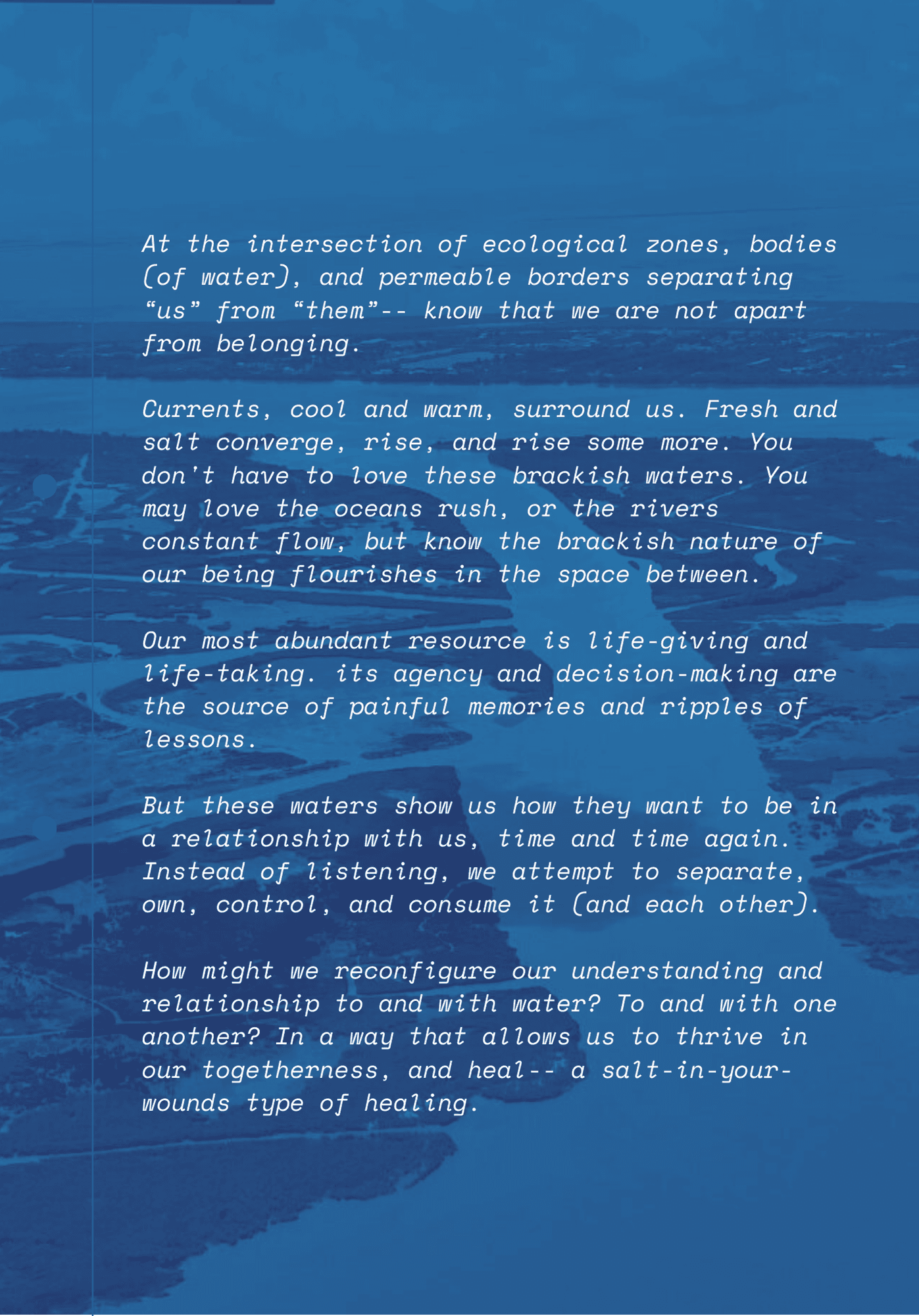 Artists will attend salons, presentations, and site visits that immerse them in the region's landscapes and stories from critical infrastructure to coastal ecosystems.