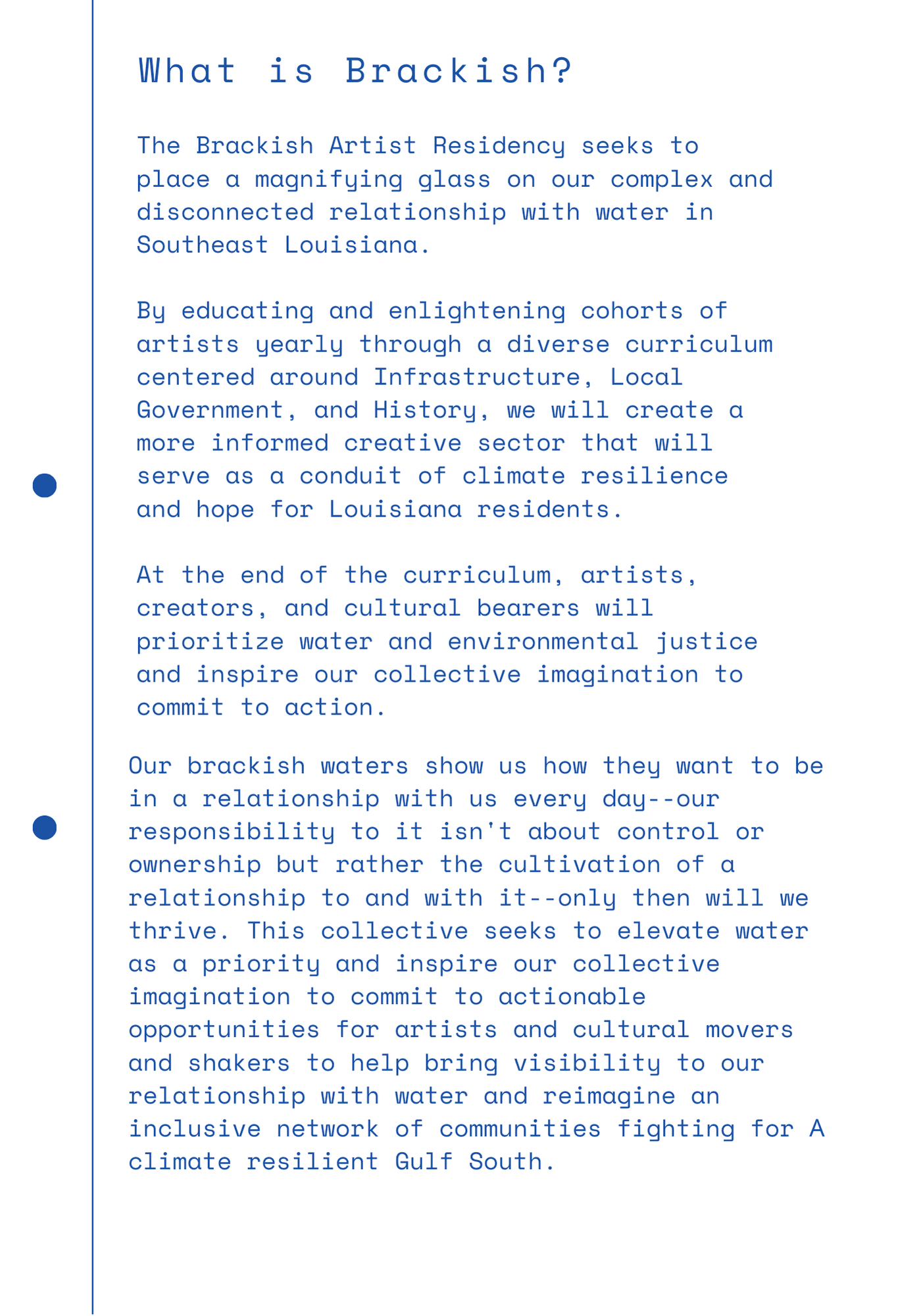 Join us for a six week experience where selected artists will take part in a hands on curriculum exploring the environmental challenges shaping Southeast Louisiana.
