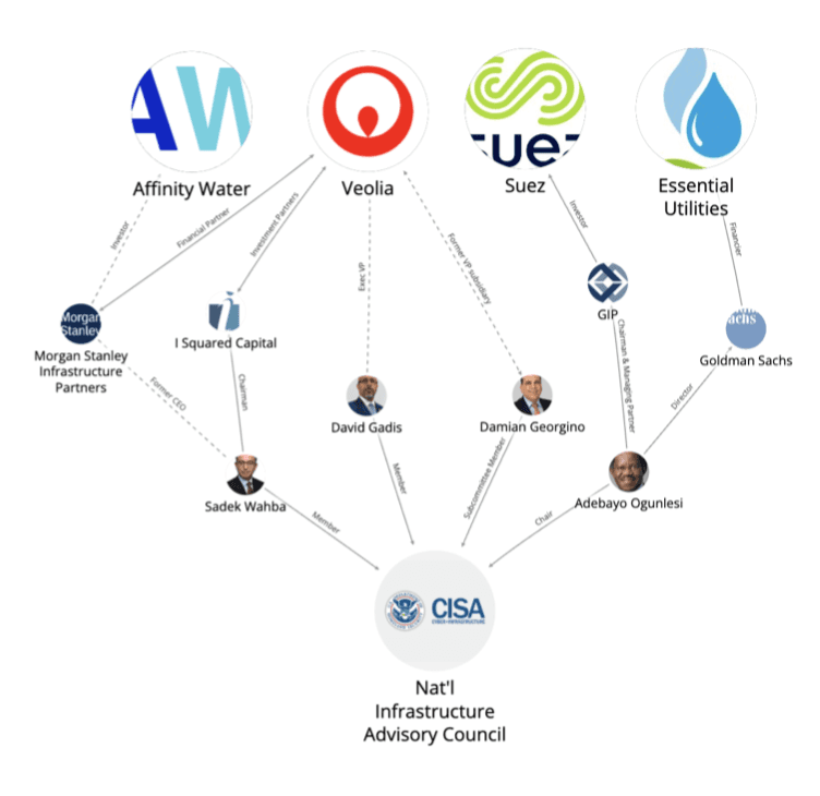 In August 2022, the Biden Administration announced the appointments to the National Infrastructure Advisory Council. Notably, the Chair of the Council, Adebayo Ogunlesi, is a Founding Partner and the Chairman and Chief Executive Officer of Global Infrastructure Partners (GIP), an investment bank with a diverse portfolio of over $84 million in assets, including those related to water and wastewater services. In 2022, Veolia, the world’s largest private water company, closed a multi-billion-dollar acquisition of Suez Group, a leading force in water privatization across Europe, Asia, and Africa and a client of GIP. This acquisition cleared the way for GIP to acquire a 40% stake in "New Suez." This intricate web of connections raises concerns about the impartiality of recommendations provided by its members, but it does end here.