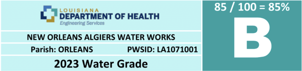 Louisiana Department of Health 2023 Algiers Water Works Grade